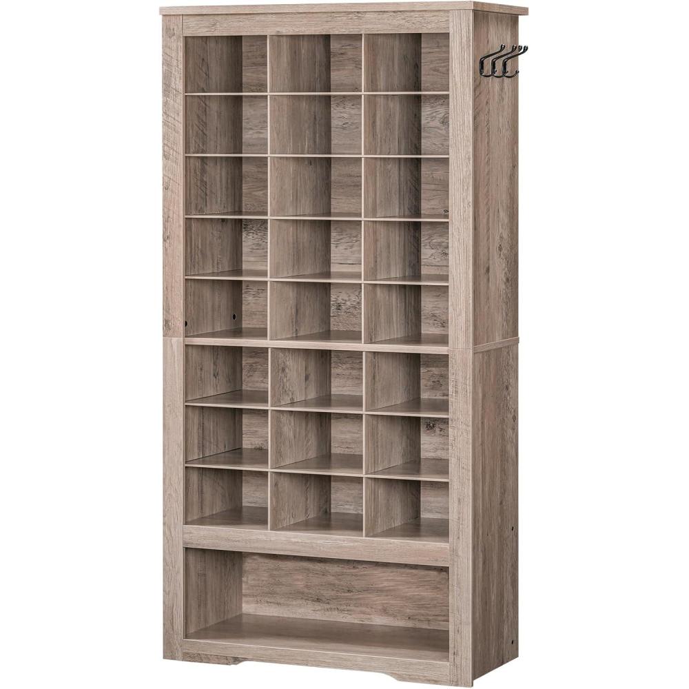 HOOBRO Tall Shoe Cabinet, 9 Tier Shoe Storage Cabinet, Freestanding Wooden Shoe Cabinet Organizer with 24 Cubbies and 3 Hooks, for Entryway, Closet, Living Room, White WT24SC01(Greige)