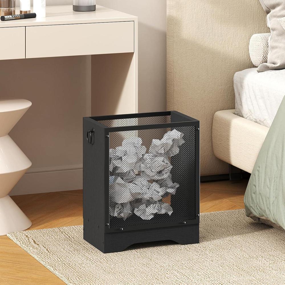 HOOBRO Industrial Trash Can, 4.5 Gallon Metal Mesh Waste Basket with Wooden Base, Small Garbage Can for Office, Bedroom, Under Desk, Black, BB06LJ01(Black)