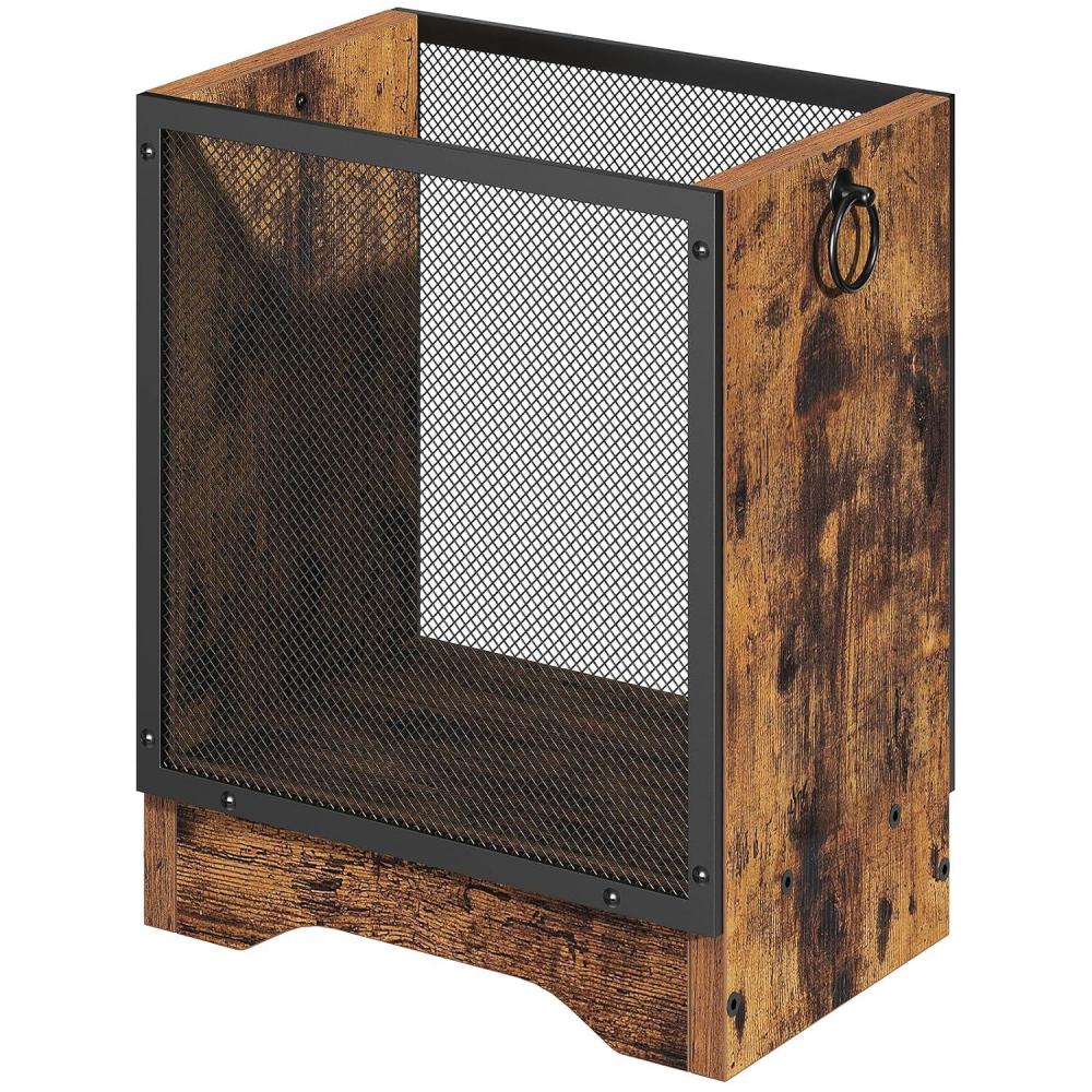 HOOBRO Industrial Trash Can, 4.5 Gallon Metal Mesh Waste Basket with Wooden Base, Small Garbage Can for Office, Bedroom, Under Desk, Black, BB06LJ01(Rustic Brown Black)