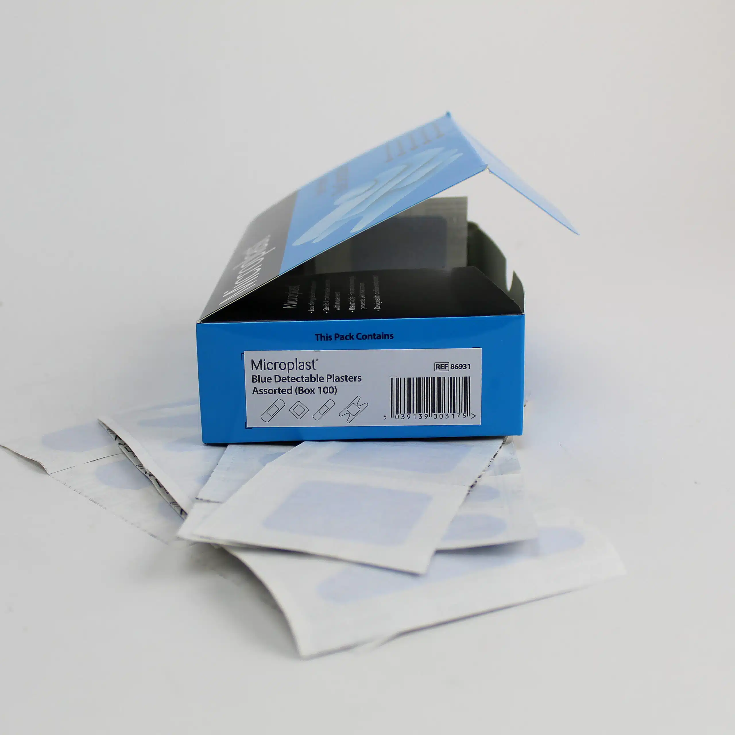 Blue Detectable Plasters – 4 Type Assorted. (100)
