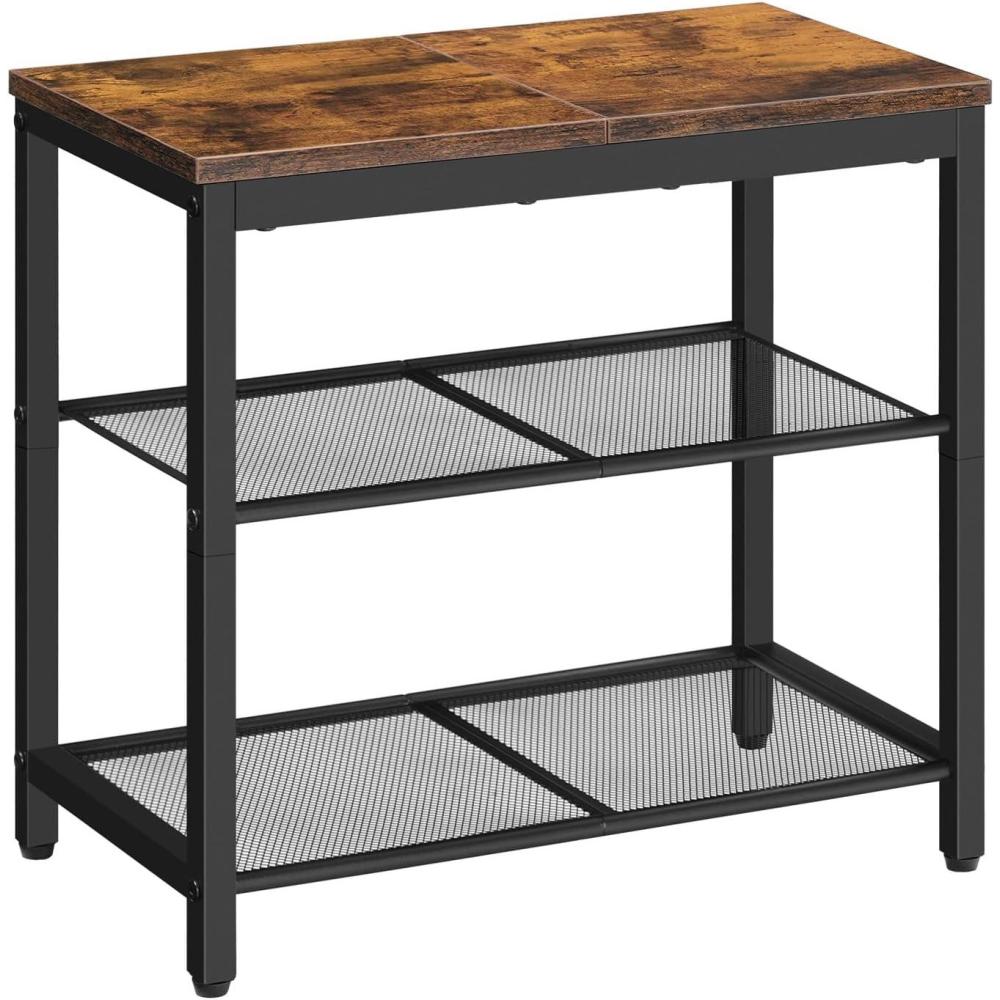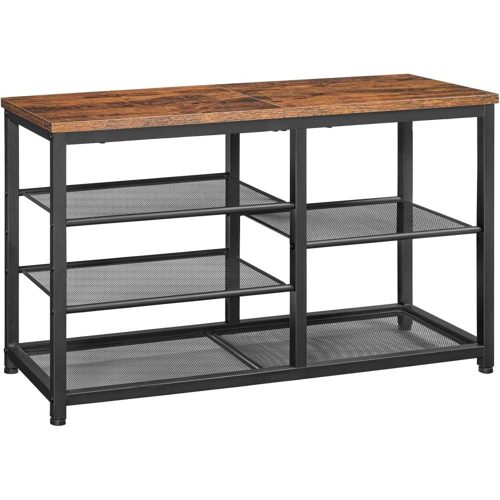HOOBRO Shoe Bench, 3-Tier Shoe Rack, Industrial Shoe Organizer Storage Bench, 29.5 inches Entry Bench with Mesh Shelves, for Entryway, Living Room, Hallway, Easy Assembly, Greige BG75HX01(Rustic Brown Black)