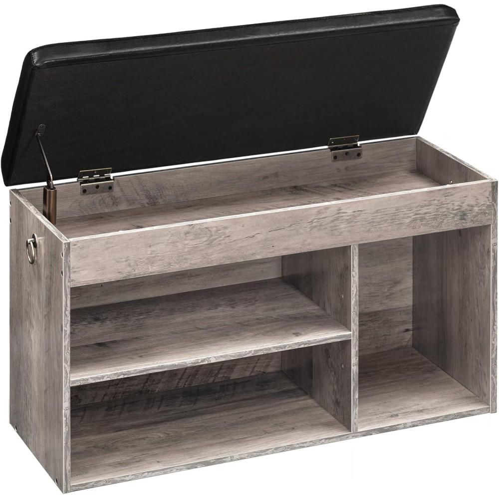 HOOBRO Storage Bench with Cushion, Shoe Bench with Lift Top Storage, Wooden Shoe Cabinet Bench with Hidden Storage, 12.4 x 32.3 x 18.3 Inches, for Entryway, Bedroom, Rustic Brown and Black BF40HX01(Greige Black)