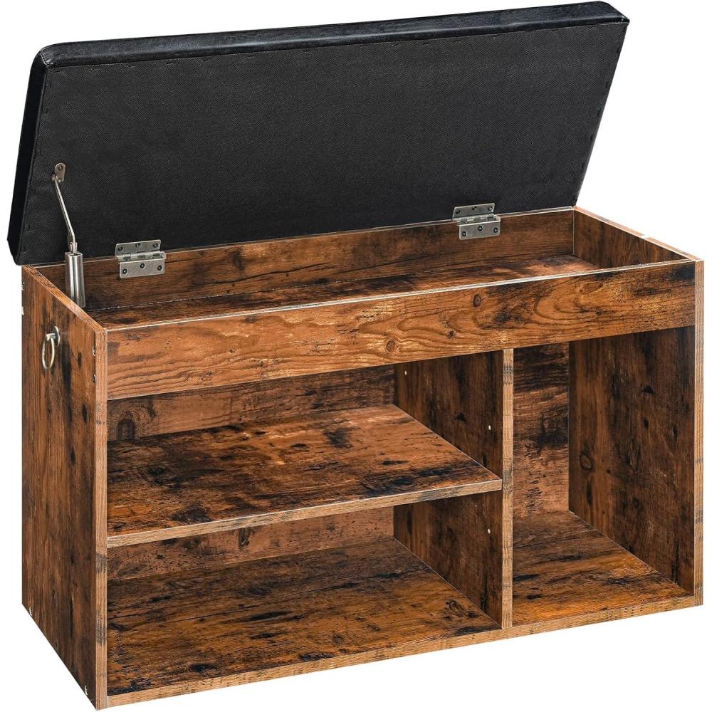 HOOBRO Storage Bench with Cushion, Shoe Bench with Lift Top Storage, Wooden Shoe Cabinet Bench with Hidden Storage, 12.4 x 32.3 x 18.3 Inches, for Entryway, Bedroom, Rustic Brown and Black BF40HX01(Rustic Brown Black)