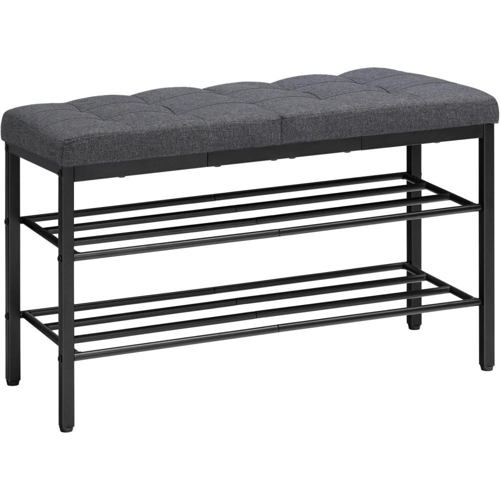 HOOBRO Shoe Bench, Storage Bench with Cushion, Entryway Bench Shoe Shelf with Seat, 12 x 29.5 x 18.1 Inches, Shoe Rack for Living Room, Bedroom, Hallway, Dark Gray BGZ95HX01