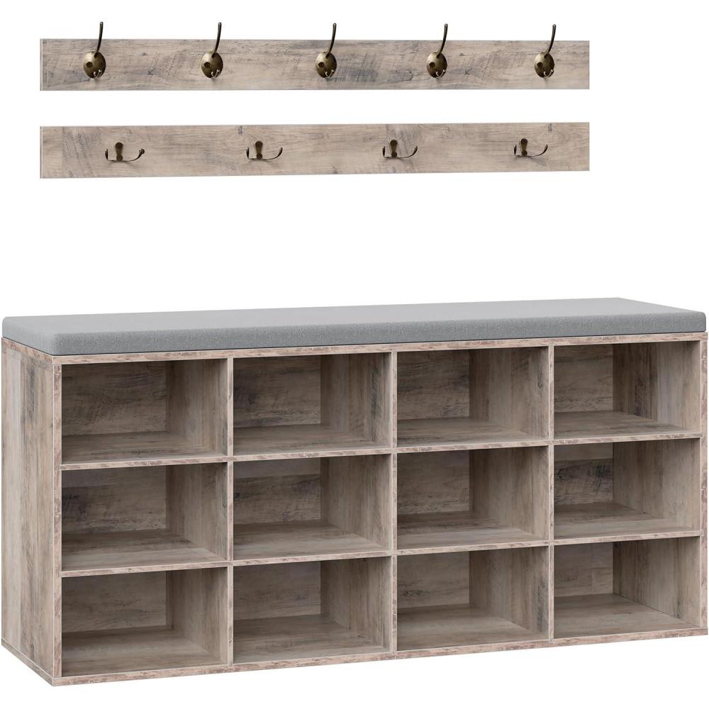 HOOBRO Shoe Storage Bench with Cushion, 39.4″ L Entryway Bench with 12 Cubbies, Entryway Hall Tree with Storage, Cubby Shoe Rack Bench with Coat Rack for Hallway, Holds up to 330 lb, White WT112HX01(Grey)