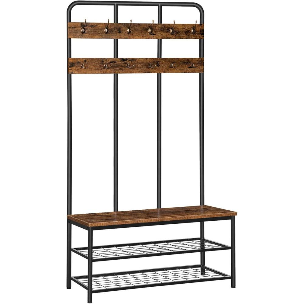 HOOBRO Hall Tree Entryway Storage Bench, Coat Rack Shoe Bench, Shoe Rack Organizer with Coat Hooks, 3-in-1 Design, Wooden Furniture with Metal Frame, Rustic Brown and Black BF17MT01(Rustic Brown Black)