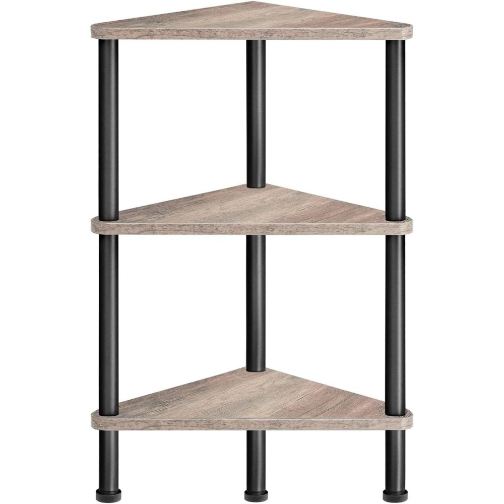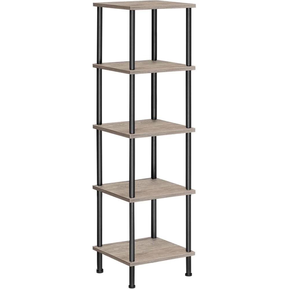 HOOBRO 5-Tier Corner Shelf Stand, Corner Square Rack Display Shelf, Tall Storage Plant Stand, Bookcase for Small Spaces, Living Room, Home Office, Kitchen, Rustic Brown and Black BF50CJ01(Greige Black)