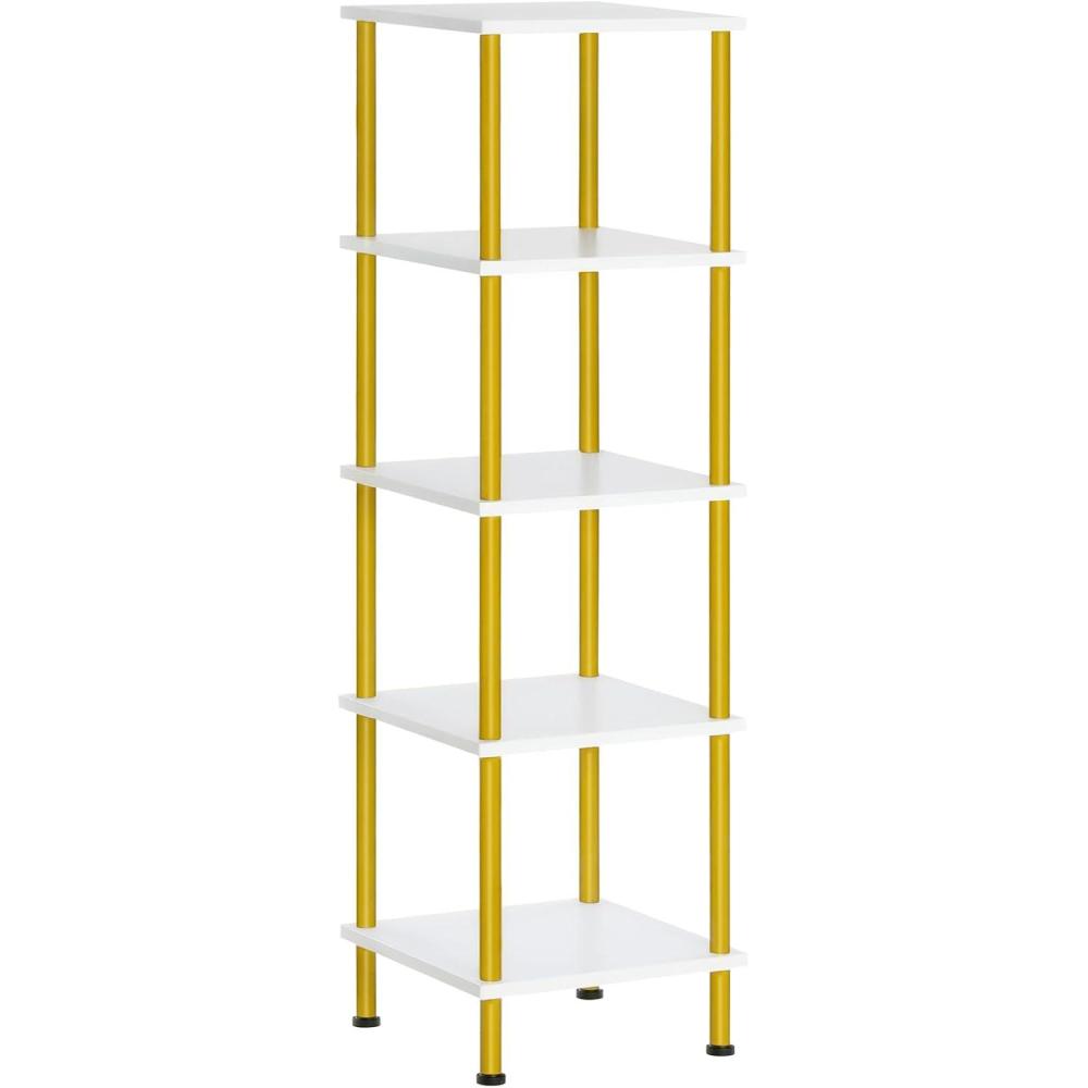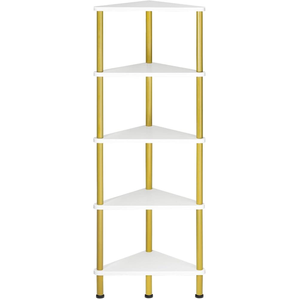 HOOBRO 5-Tier Corner Shelf Stand, Corner Square Rack Display Shelf, Tall Storage Plant Stand, Bookcase for Small Spaces, Living Room, Home Office, Kitchen, Rustic Brown and Black BF50CJ01(White Gold)