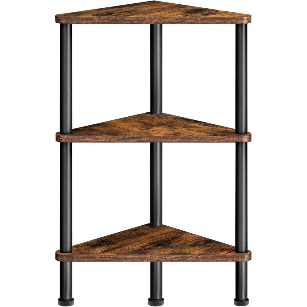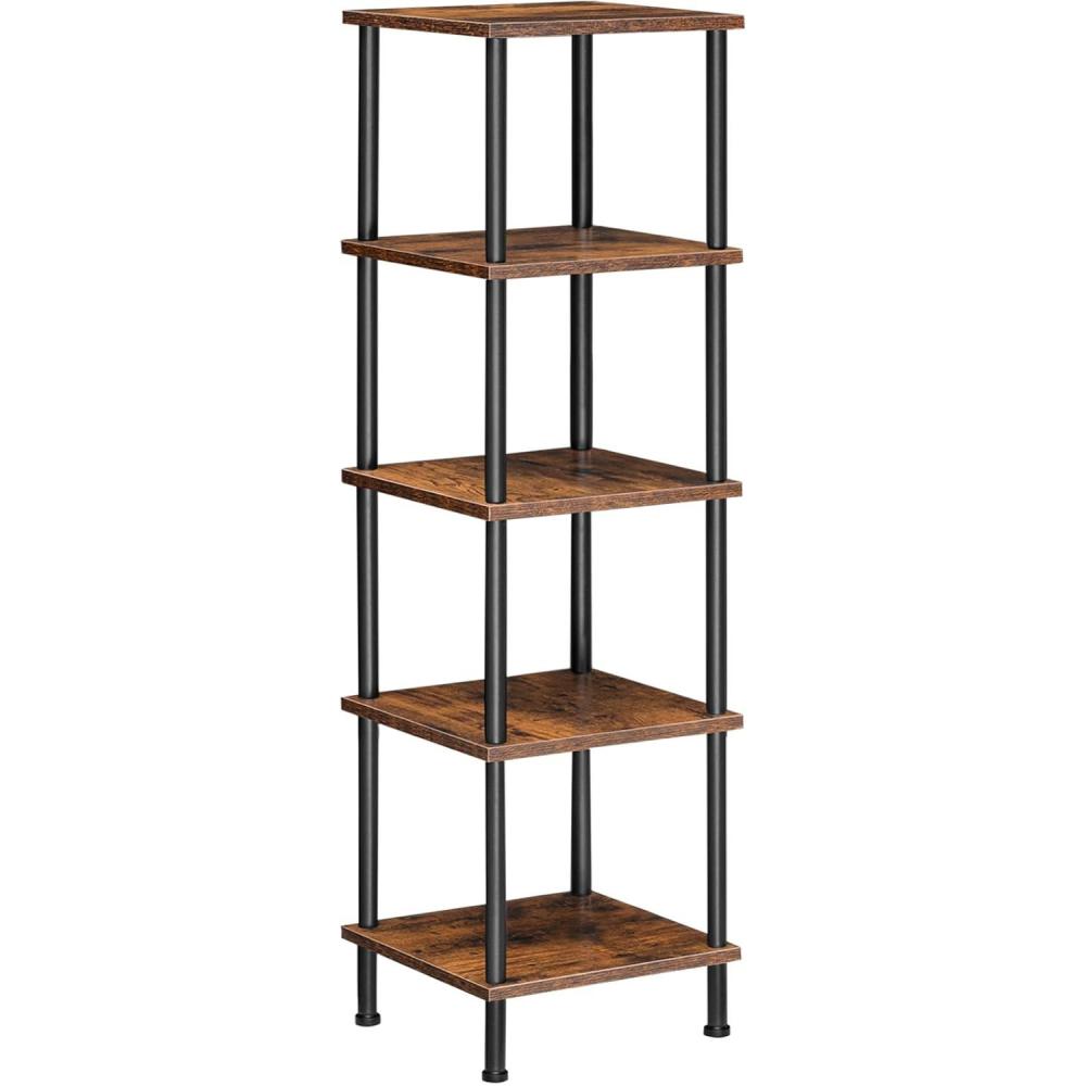 HOOBRO 5-Tier Corner Shelf Stand, Corner Square Rack Display Shelf, Tall Storage Plant Stand, Bookcase for Small Spaces, Living Room, Home Office, Kitchen, Rustic Brown and Black BF50CJ01(Rustic Brown Black)