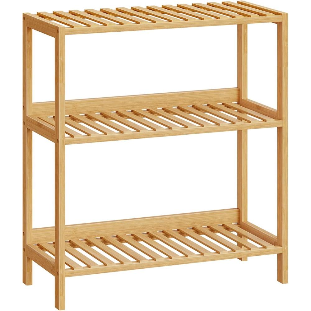 HOOBRO Bamboo Storage Shelf, 4-Tier Freestanding Shelving Unit, Multifunctional Storage Rack with Back Panel, 23.6 x 10.2 x 39.4 inches, for Bathroom, Living Room, Balcony, Kitchen, Natural YL95CJ01(23.6″L x 10.2″W x 26″H)