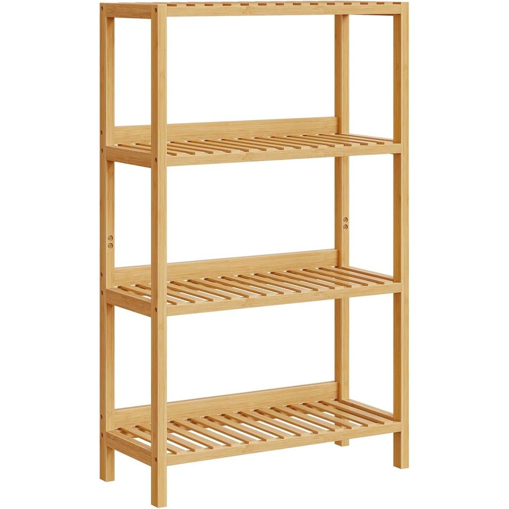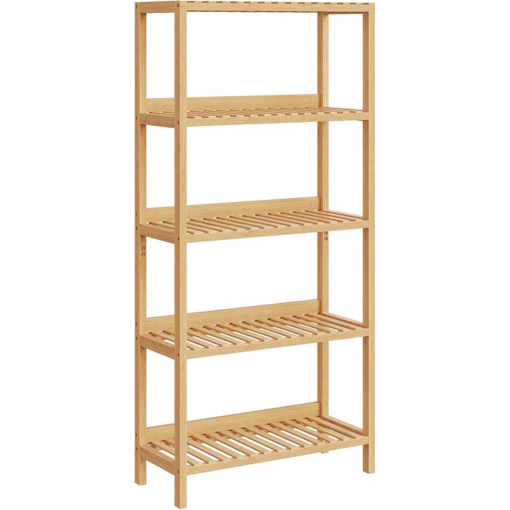 HOOBRO Bamboo Storage Shelf, 4-Tier Freestanding Shelving Unit, Multifunctional Storage Rack with Back Panel, 23.6 x 10.2 x 39.4 inches, for Bathroom, Living Room, Balcony, Kitchen, Natural YL95CJ01(23.6″L x 10.2″W x 51.2″H)