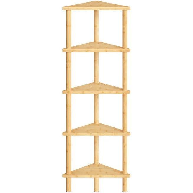 HOOBRO Corner Shelf Stand, 5-Tier Bamboo Corner Bookshelf, Plant Display Shelf, Corner Bookcase, Multipurpose Shelving Unit for Small Space, Living Room, Easy Assembly, Natural YL20CJ01(Natural)