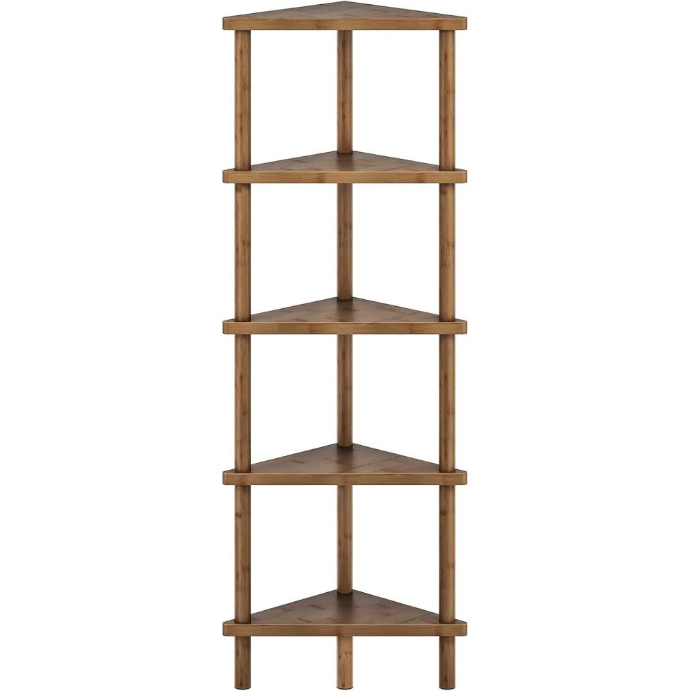 HOOBRO Corner Shelf Stand, 5-Tier Bamboo Corner Bookshelf, Plant Display Shelf, Corner Bookcase, Multipurpose Shelving Unit for Small Space, Living Room, Easy Assembly, Natural YL20CJ01(Mocha)