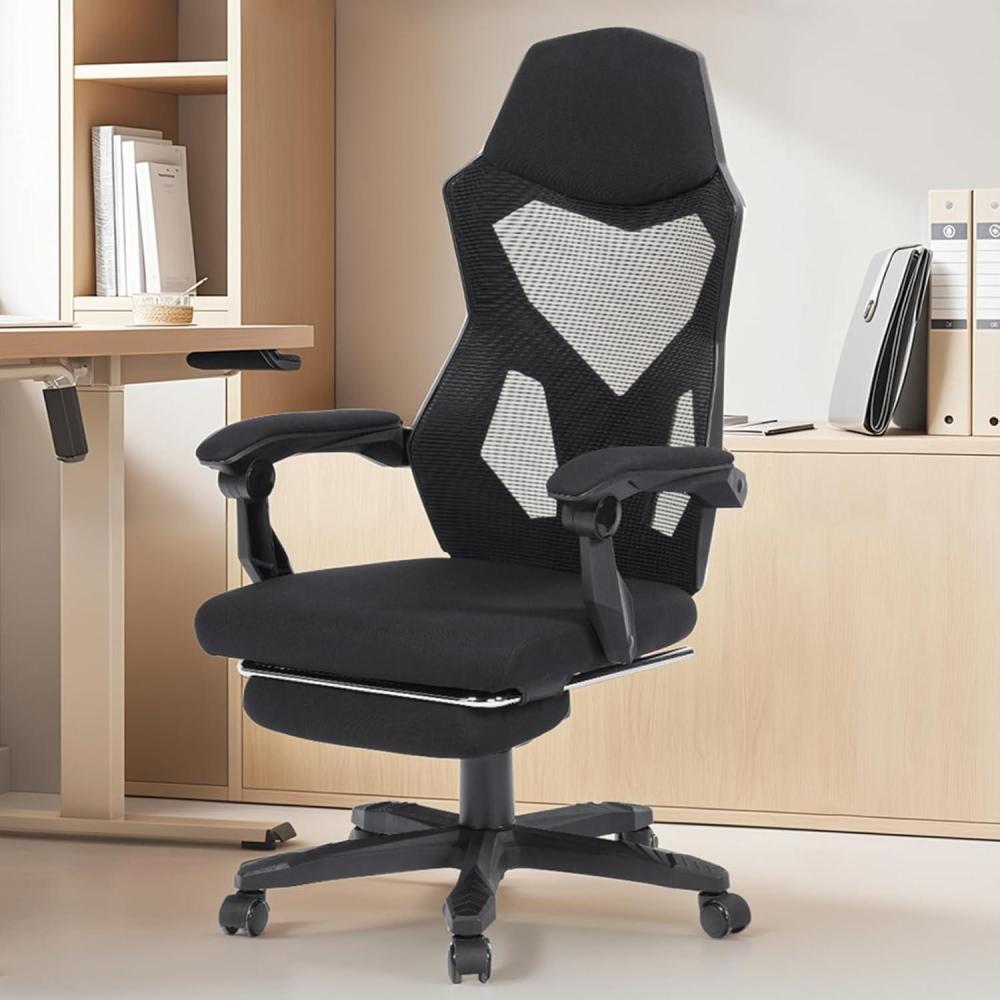 HOOBRO Ergonomic Office Chair, Office Computer Desk Chair with Footrest, Back Lumbar Support Flip-up 3D Armrest Executive Rolling Swivel Task Chairs & 90-135° Tilt Lock, Mesh Chairs for Man Woman