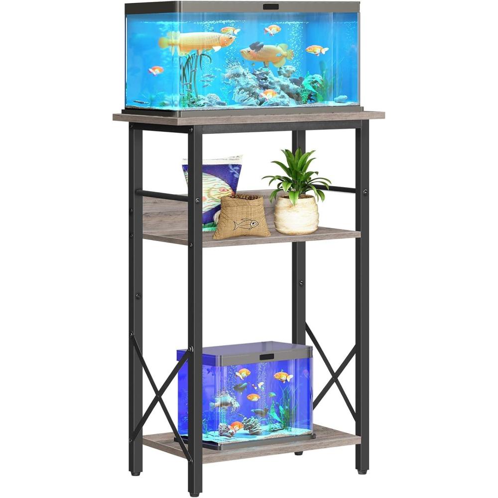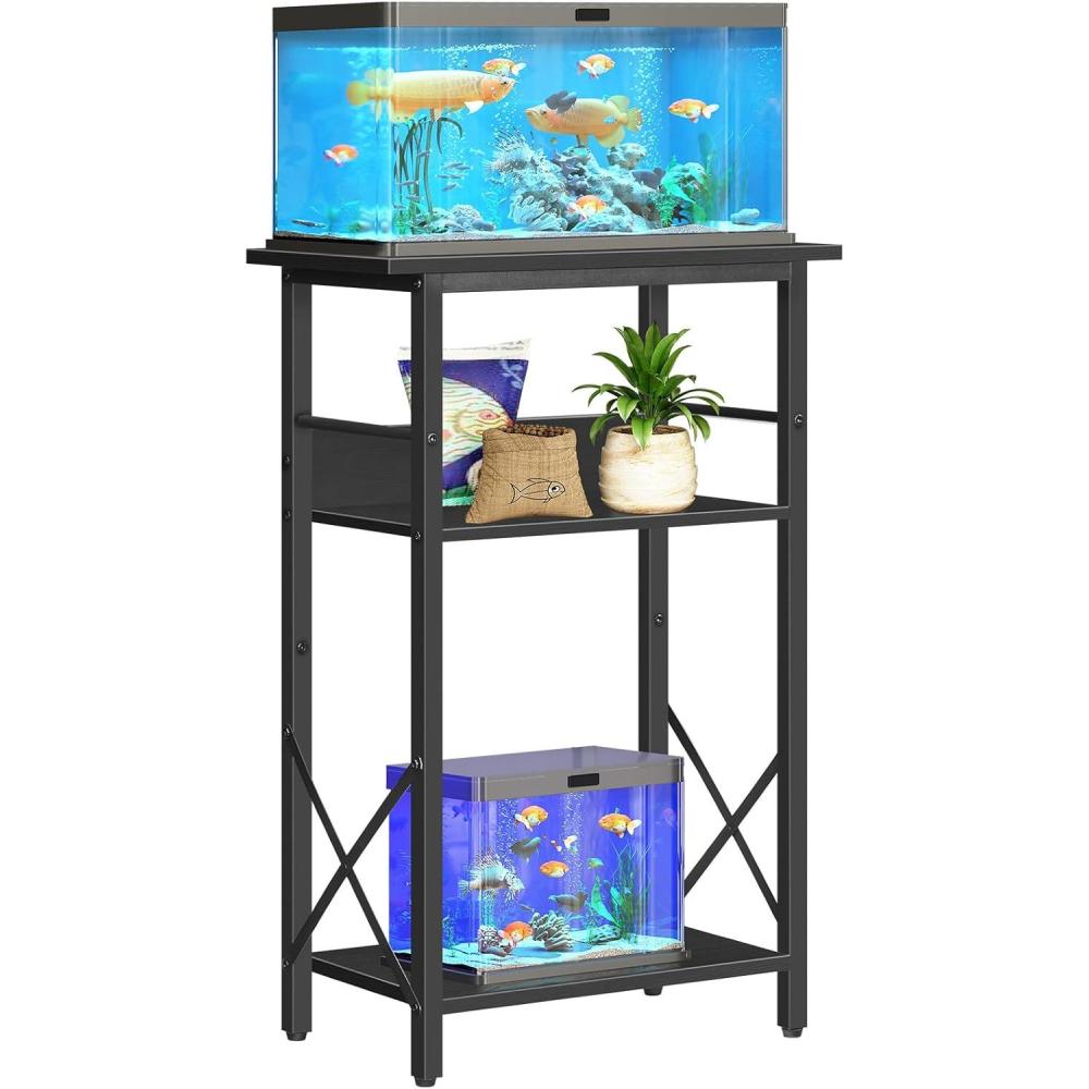 HOOBRO 10 Gallon Aquarium Stand, 3-Tier Fish Tank Stand with Storage, Reptile Turtle Tank Stand with Metal Frame, 20.5″ L x 11″ W , Greige BG52FT01(Greige Black)