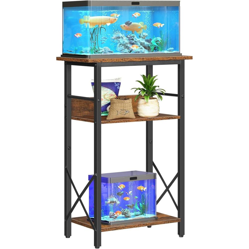 HOOBRO 10 Gallon Aquarium Stand, 3-Tier Fish Tank Stand with Storage, Reptile Turtle Tank Stand with Metal Frame, 20.5″ L x 11″ W , Greige BG52FT01(Rustic Brown Black)