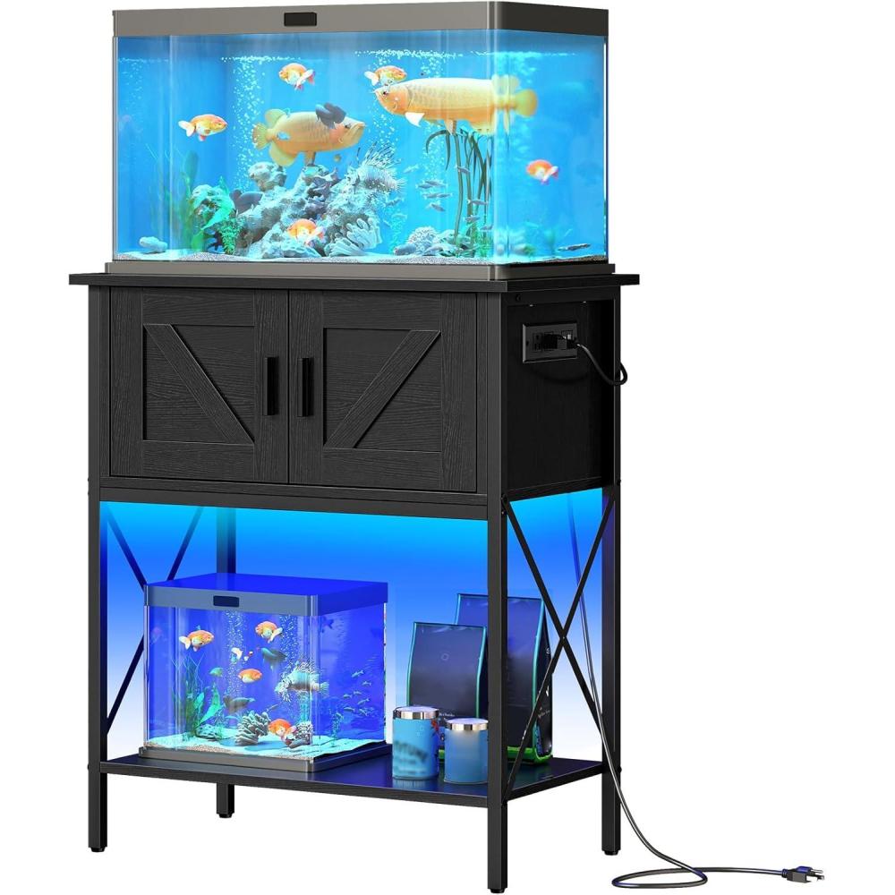 HOOBRO 20 Gallon Fish Tank Stand with Power Outlets and LED Light, Metal Frame Aquarium Stand, Reptile, Turtle Tank Stand with Cabinet Storage, 27.6” L x 15.7” W, 300 LBS Capacity, Black BB40UDFT01(Black)