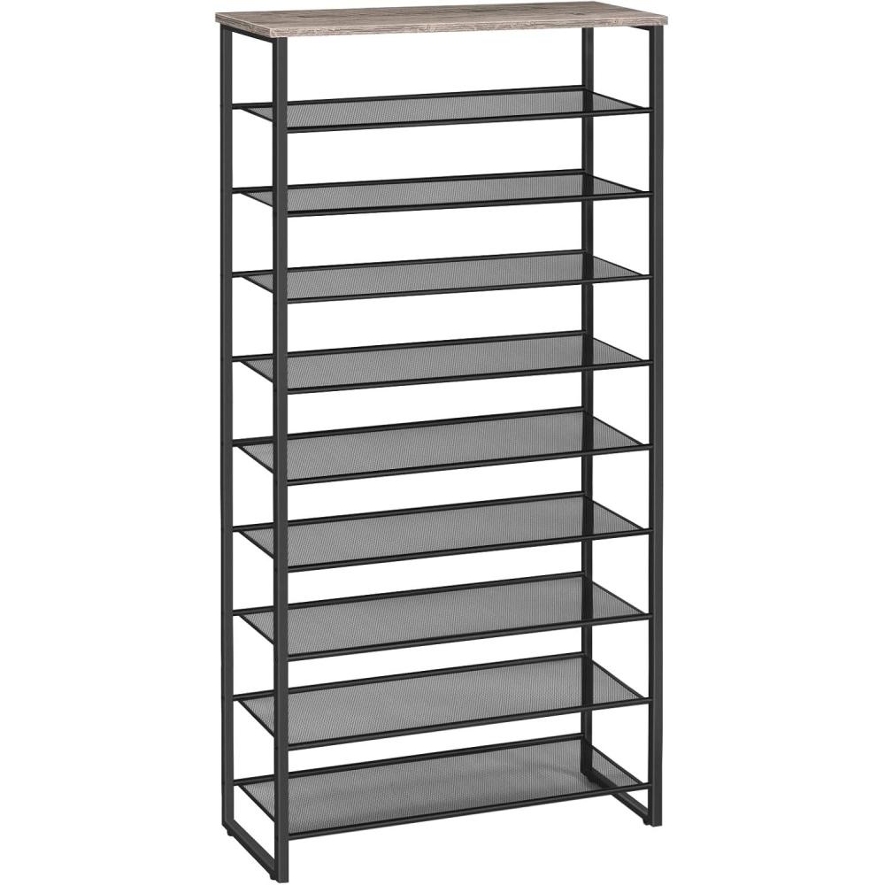 HOOBRO 10-Tier Shoe Rack for Entryway, 29.5″ L Shoe Storage Organizer, Large Capacity Shoe Shelf for Closet, Front Door Entrance, Hallway, Holds 36-40 Pairs of Shoes, Rustic Brown and Black BF107XJ01(Greige Black)