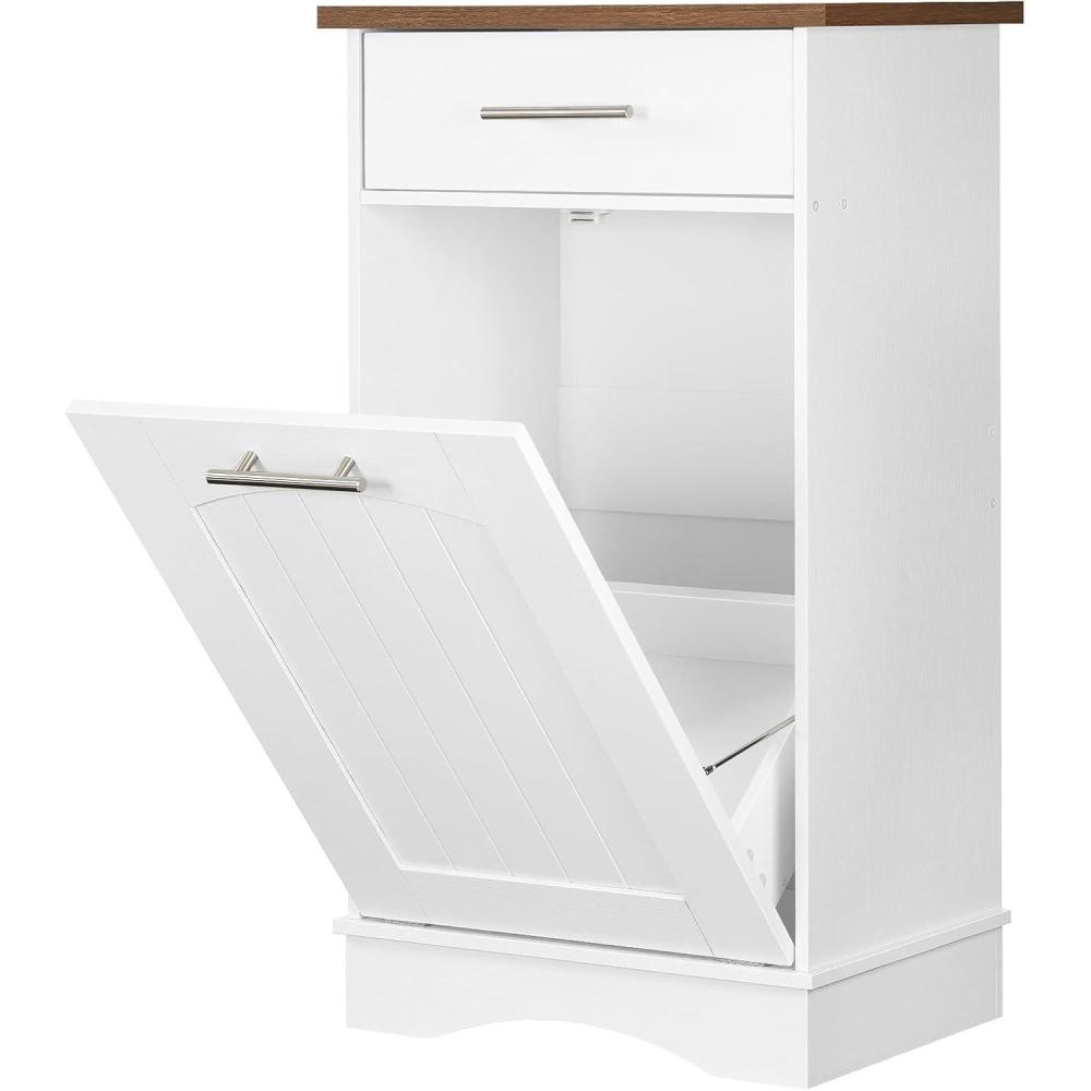 HOOBRO 10 Gallon Tilt Out Trash Cabinet, Kitchen Trash Can, Trash Bin Storage, with Flip Door and Large Drawer, Hidden Laundry Hamper Cabinet, for Kitchen, Laundry, Black and Walnut BH02LJ01(White Walnut)