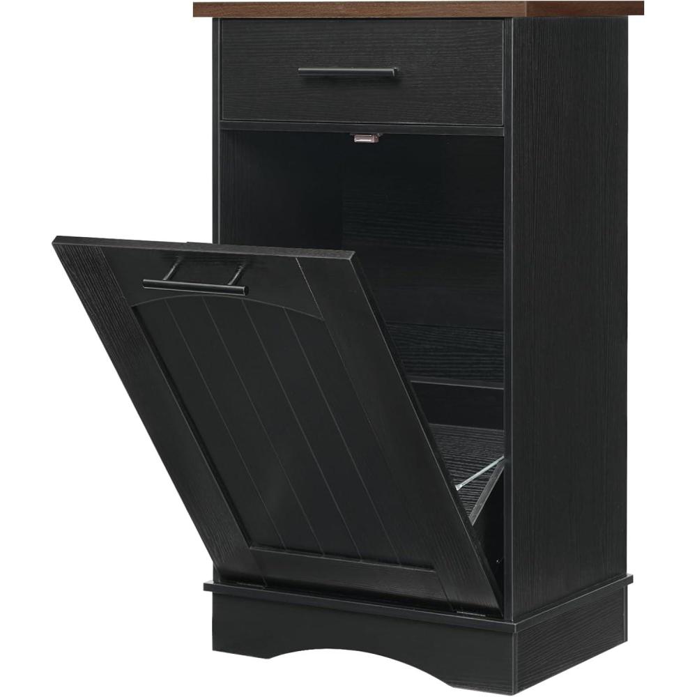 HOOBRO 10 Gallon Tilt Out Trash Cabinet, Kitchen Trash Can, Trash Bin Storage, with Flip Door and Large Drawer, Hidden Laundry Hamper Cabinet, for Kitchen, Laundry, Black and Walnut BH02LJ01(Black Walnut)
