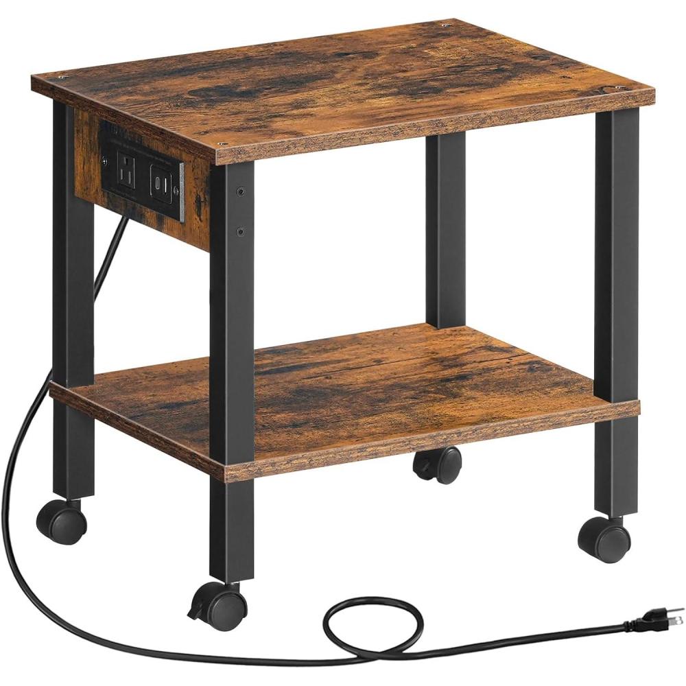 HOOBRO 2-Tier Printer Stand with Charging Station, Under Desk Printer Table, Printer Cart with Storage Shelves, Shelf for Small Spaces, for Home Office, Rustic Brown and Black BF38UPS01(Rustic Brown Black)