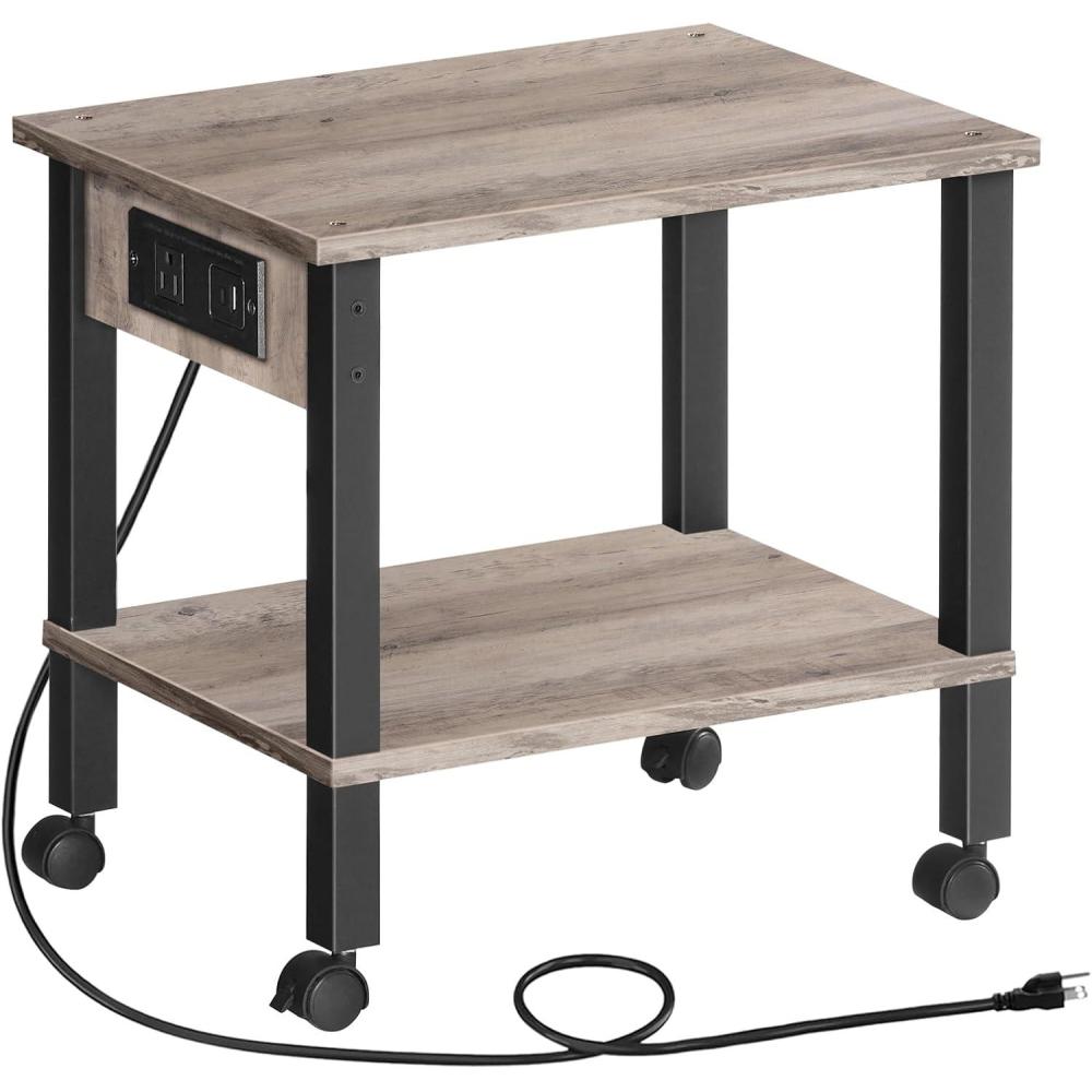 HOOBRO 2-Tier Printer Stand with Charging Station, Under Desk Printer Table, Printer Cart with Storage Shelves, Shelf for Small Spaces, for Home Office, Rustic Brown and Black BF38UPS01(Greige Black)