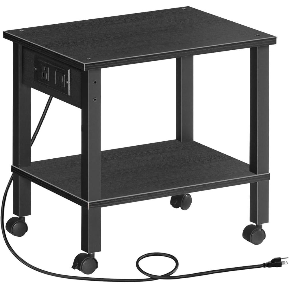 HOOBRO 2-Tier Printer Stand with Charging Station, Under Desk Printer Table, Printer Cart with Storage Shelves, Shelf for Small Spaces, for Home Office, Rustic Brown and Black BF38UPS01(Black)