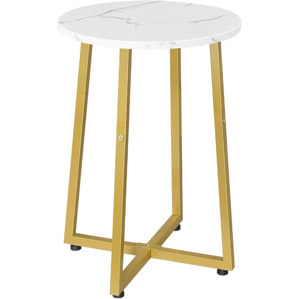 HOOBRO Side Table, Round End Accent Table with Sturdy Metal Frame, 15.7″ Round Nightstand, for Living Room, Bedroom, Balcony, Office, Rustic Brown BF95BZ01(Marble Gold)