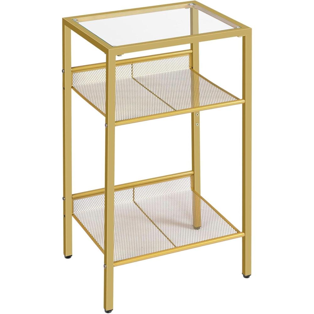 HOOBRO Gold Side Table, Tall Telephone End Table with Mesh Shelves, 3-Tier Nightstand with Tempered Glass Tabletop, for Living Room, Bedroom, Gold GD04DH01