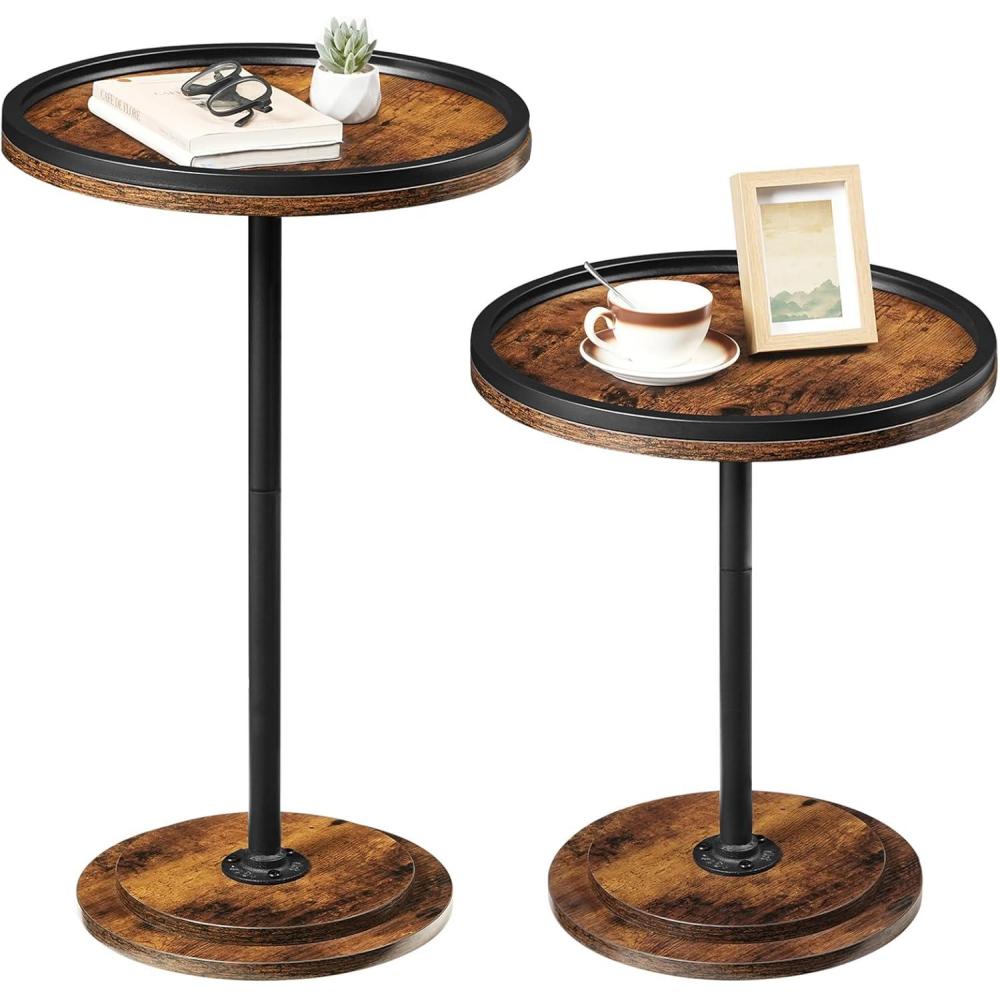 HOOBRO Nesting Coffee Table Set of 2, Small Round Coffee Table Set with Wooden Pedestal, Modern Circle Accent Side Tables for Living Room, Center, Rustic Brown BF170BZ01(Rustic Brown Black)