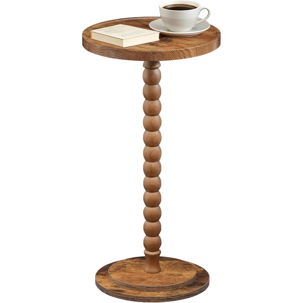 HOOBRO Round Side Table, Small Drink Table for Small Space, End Table with Rubberwood Accent Leg, Stable Pedestal, Easy Assembly, for Living Room, Corner, Bedroom, Rustic Brown FG187BZ01(Rustic Brown)