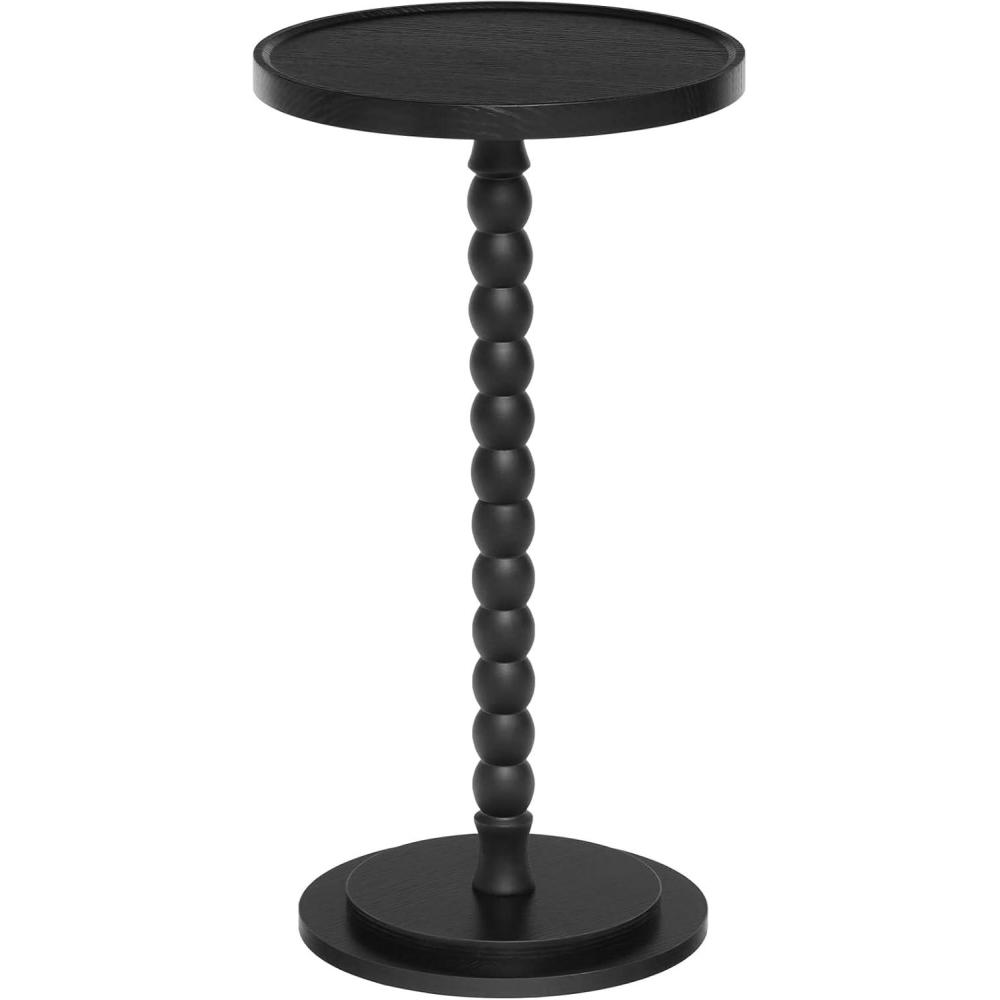 HOOBRO Round Side Table, Small Drink Table for Small Space, End Table with Rubberwood Accent Leg, Stable Pedestal, Easy Assembly, for Living Room, Corner, Bedroom, Rustic Brown FG187BZ01(Black)