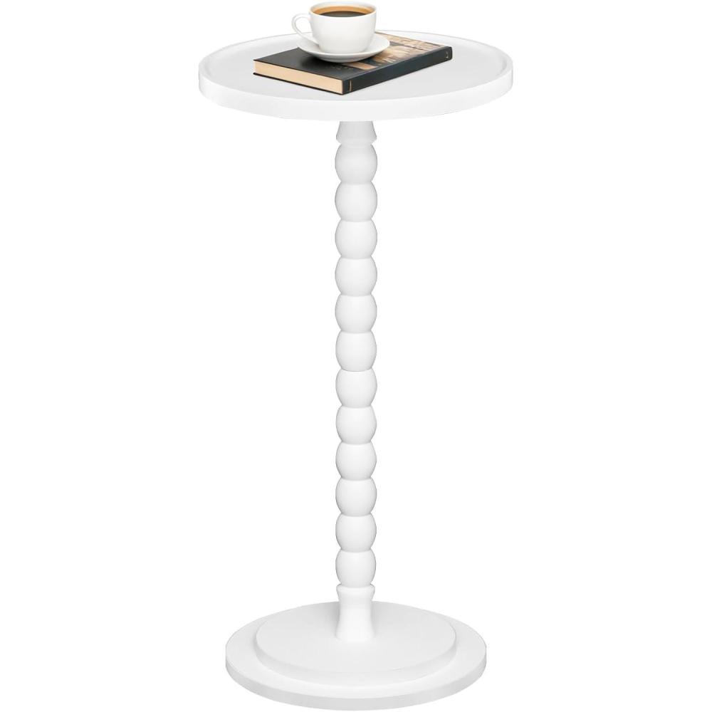 HOOBRO Round Side Table, Small Drink Table for Small Space, End Table with Rubberwood Accent Leg, Stable Pedestal, Easy Assembly, for Living Room, Corner, Bedroom, Rustic Brown FG187BZ01(White)