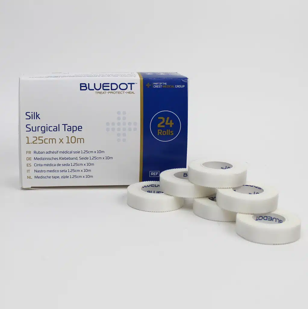 Blue Dot Surgical Silk Tape. 1.25cm x 10m