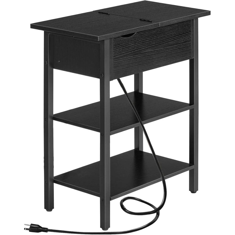 HOOBRO End Table with Charging Station, Narrow Side Table, Flip Top Nightstand with USB Ports and Outlets, Bedside Tables with Shelf for Small Spaces, Living Room, Rustic Brown BF341BZ01(Black)