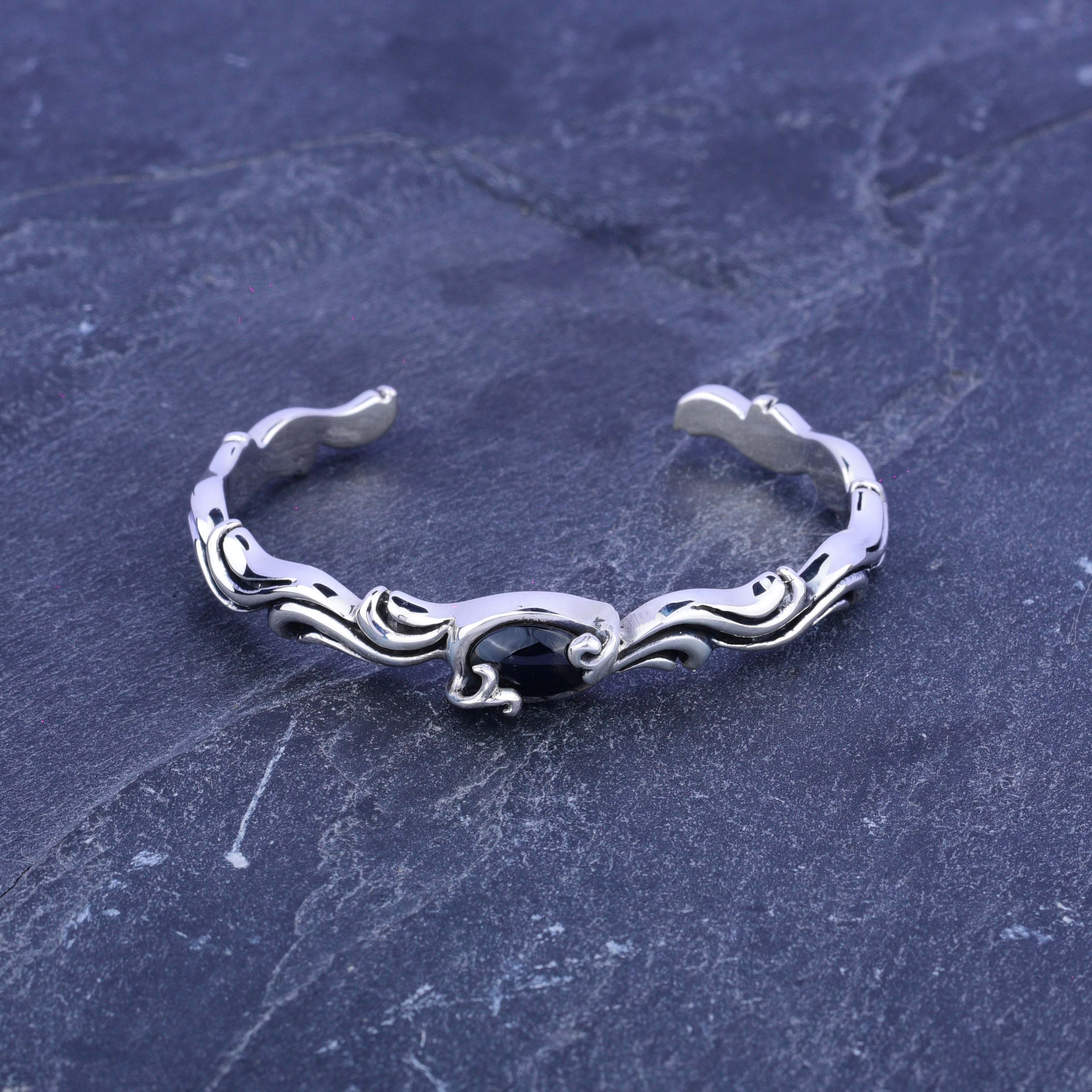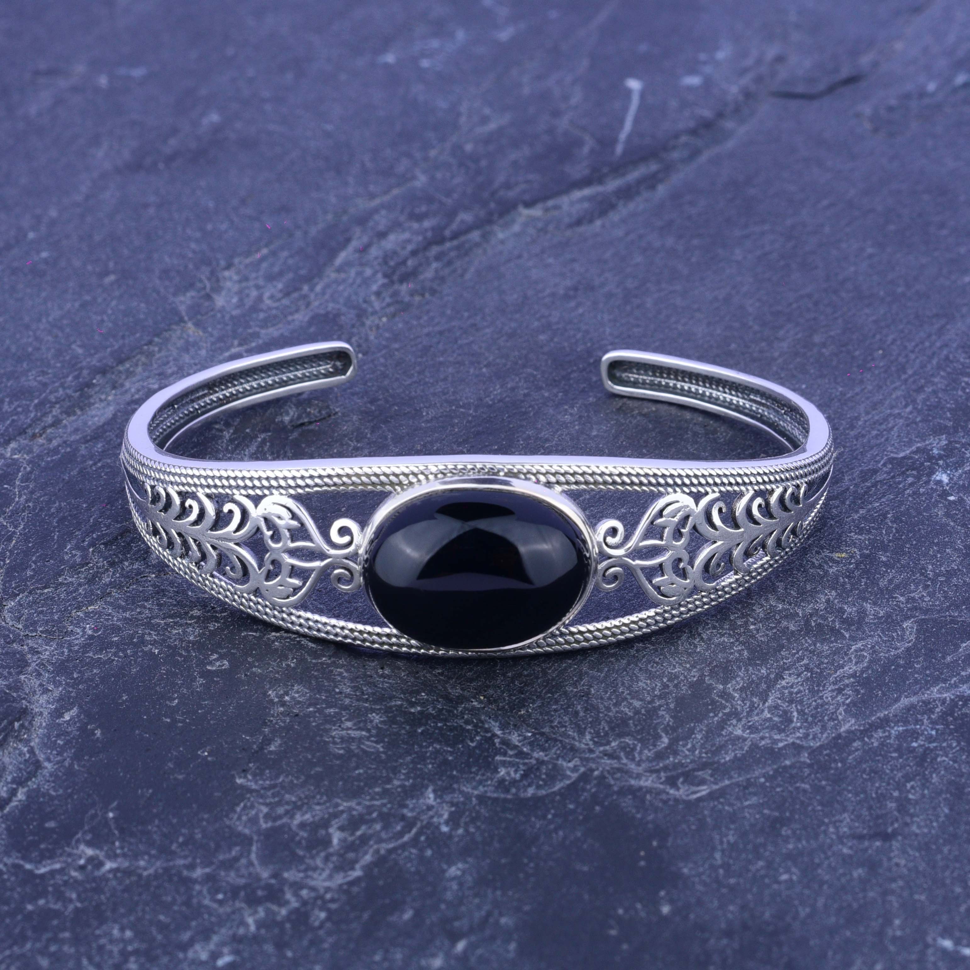 Black Onyx Stone Silver Bangle (16.4 Grm)