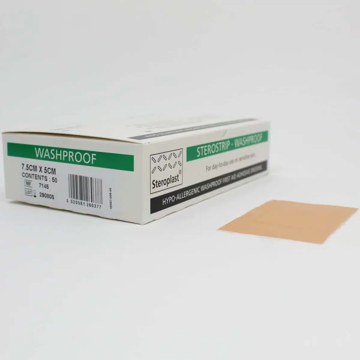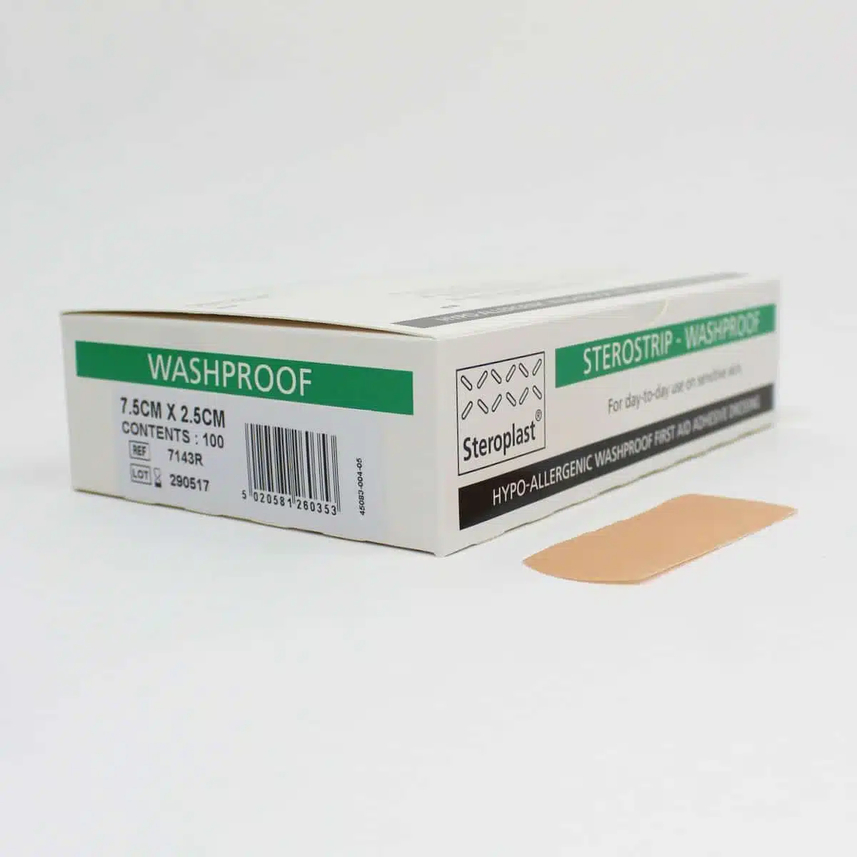 Sterostrip Washproof Hypo-Allergenic Plasters. 7.5 x 2.0cm.