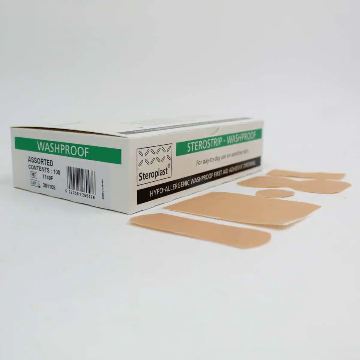 Washproof Hypo-Allergenic Plasters. 5 Assorted Sizes.